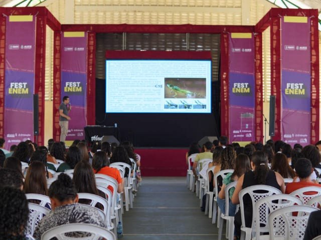 O Fest Enem foi realizado no último sábado (1º), na quadra do Centro de Educação de Jovens e Adultos (Ceja), no Crato, e reuniu centenas de estudantes em um dia inteiro de aprendizado, serviços e integração. Promovido pela Câmara Municipal, por meio do programa Alcance Enem, o evento foi o maior aulão preparatório para o Enem no Cariri.